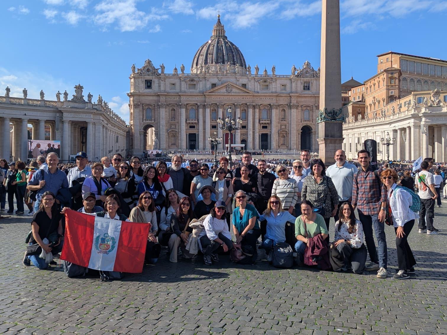 Un grupo significativo de los claustros de profesores de los colegios Santiago Apóstol Marxalenes (Valencia) y Santa María de Guadalupe (Callao) hemos tenido la gracia inmensa de peregrinar juntos a Roma, del 30 de octubre al 3 de noviembre, con motivo del Jubileo del Mundo Educativo. Los educadores, acompañados por los cónyuges de algunos de ellos, pudimos participar durante esos días no solo de los actos principales del Jubileo (la audiencia con el Papa León XIV y la Eucaristía conclusiva) sino también tocar de cerca, y empaparnos de la santidad que desprende un lugar como Roma, lugar de encuentro con tantos testigos de la fe. Especialmente entrañable fue la visita que el grupo hizo a la que fuera, durante más de 30 años, la casa y escuela de san José de Calasanz, y donde reposan sus restos mortales: la Iglesia de san Pantaleón, hoy curia general de los Padres Escolapios. Allí pudimos rezar por la misión que la Iglesia nos confía, así como por cada niño y cada educador de los centros educativos en los que hemos sido enviados a evangelizar.